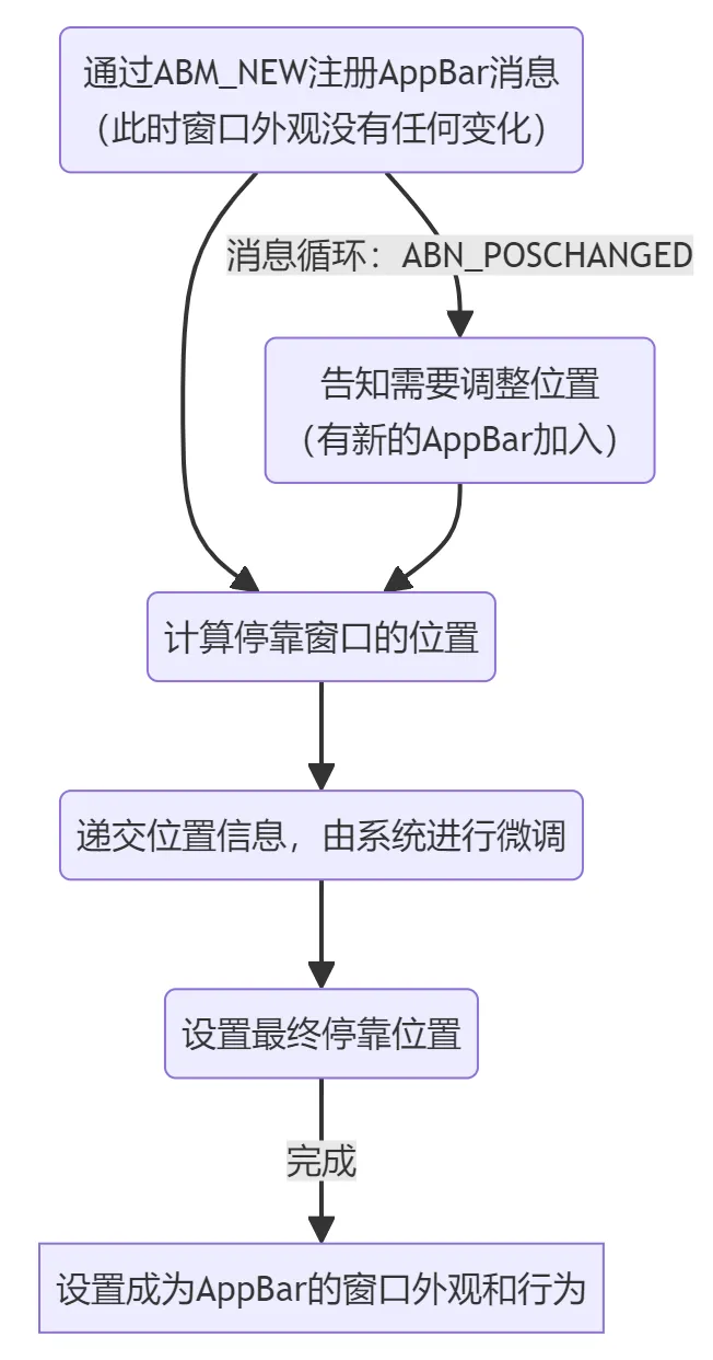 即让窗口固定在屏幕某一边,并且保证其他窗口最大化后不会覆盖AppBar占据的区域(类似于Windows任务栏)。